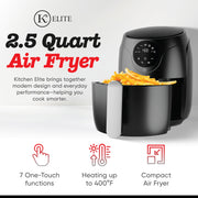 Kitchen Elite 2.5 Quart Compact Air Fryer Oven Small Countertop Oil-Free Cooker with PFAS-Free Nonstick Basket, Easy Clean, Black