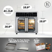 Kitchen Elite 26 Quart French Door Air Fryer Oven Extra Large Countertop Convection Cooker with LED Display