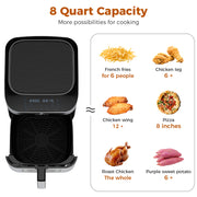 Kitchen Elite 8 QT Digital Air Fryer, Stainless Steel With Window