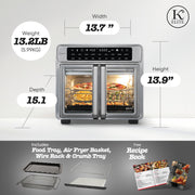 Kitchen Elite 16 Quart French Door Air Fryer Oven Countertop Convection Cooker with LED Display