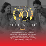Cook with confidence and convenience using the Kitchen Elite 16QT French Door Air Fryer Oven. With a spacious 16-quart capacity and elegant stainless-steel French doors, this countertop appliance is designed for families who want power, precision, and versatility in one sleek package. Featuring an adjustable temperature range of 100°F–450°F and a 0–24 hour timer, this air fryer oven gives you full control to bake, broil, toast, roast, air fry, dehydrate, defrost, proof dough, and more. The LED digital display makes operation simple, while the French door design provides easy access and a modern look. Including a food tray, air fryer basket, wire rack, and crumb tray, you'll have everything you need for the perfect meals, giving you the flexibility to cook multiple dishes at once. Crafted for safety and performance, the PFAS-free nonstick basket provides worry-free cooking with effortless cleanup after each use. This compact air fryer oven is the perfect size to fit on any kitchen countertop, whether it's in your home or dorm room, to prepare meals for all your guests. Backed by over 70 years of Kitchen Elite expertise, this air fryer blends style, function, and reliability. To inspire your meals, it also includes a free recipe book filled with creative ideas that make everyday cooking easier and more enjoyable.+