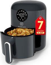 Kitchen Elite Air Fryer 2QT, 7 Presets,Compact Grey Design,Perfect for Simple Meals & Snack, Easy to Clean,90% Less Oil, Nonstick & Dishwasher Safe Basket