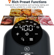 - Rapid & Convenient Cooking: Experience unparalleled speed and convenience with Kitchen Elite digital air fryer. Skip the preheating process and achieve crispy perfection in minutes, even with frozen foods. Adjust temperatures from 90 to 400°F for precise cooking results every time.