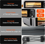 - Durable and Easy to Clean: With a 3-layer heat-resistant glass door, lights, and a stainless steel construction, this convection oven countertop is built to last. The sleek design not only enhances the aesthetics of your kitchen but also makes cleaning a breeze